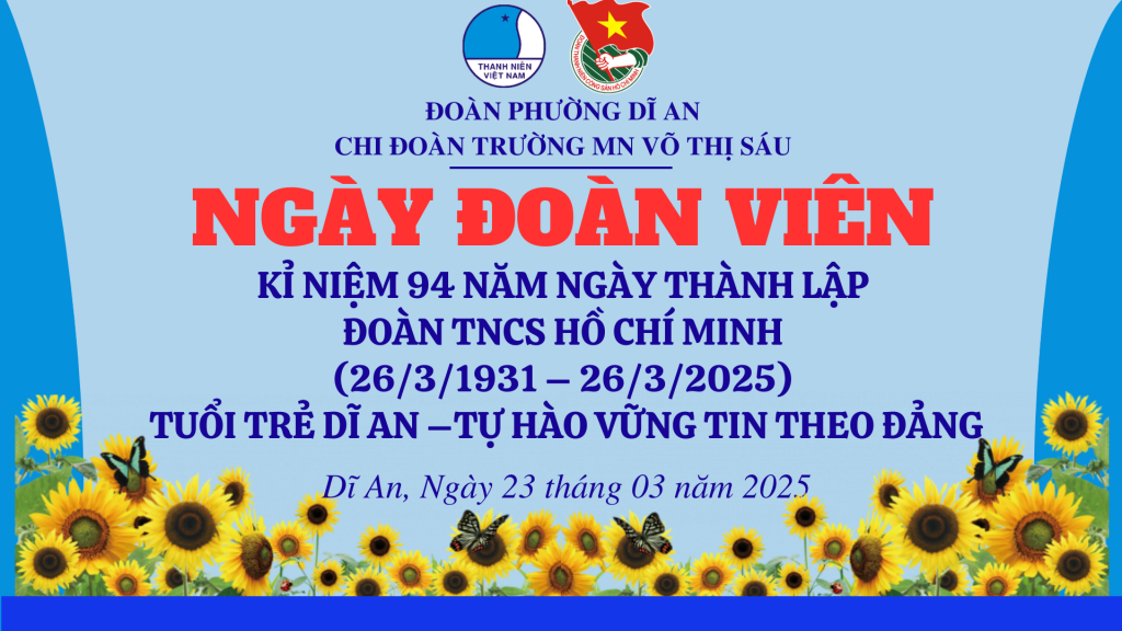 Hình ảnh hoạt động, Hoạt động đoàn thểCHÀO MỪNG KỈ NIỆM 94 NĂM NGÀY THÀNH LẬP ĐOÀN TNCS HỒ CHÍ MINH (26/03/1931 – 26/03/2025) Posted on 26/03/2025 by tuyethanh Xem thêm: KẾ HOẠCH CHIẾN LƯỢC PHÁT TRIỂN TRƯỜNG MẦM NON VÕ THỊ SÁU Chia sẽ cùng ba mẹ cách chăm sóc khi trẻ bệnh đau mắt đỏ Thực đơn từ ngày 31 tháng 3 năm 2025 đến ngày 4 tháng 4 năm 2025 Tổng Bí thư: Quy hoạch thế nào mà có nơi không có trường học? THỰC ĐƠN TỪ 07/07 ĐẾN 12/07/2025 Bài viết cùng chủ đề: TẬP HUẤN PCCC CHO CÁC TRƯỜNG TRÊN ĐỊA BÀN PHƯỜNG DĨ AN – TẠI TRƯỜNG MN VÕ THỊ SÁU BÉ VUI TRUNG THU NĂM HỌC 2025 – 2026 Chương trình xiếc – múa rối – ảo thuật cho các bé nhân dịp tết trung thu HOẠT ĐỘNG ROBOTICS – NUÔI DƯỠNG TƯ DUY KHOA HỌC CHO TRẺ Sản phẩm của Trẻ Khu vực nhà bếp của trường Khu vực các lớp học của Trường Khen Thưởng Đảng, Các Đoàn Thể và Cá nhân của Trường Hội thảo chăm sóc nuôi dưỡng cho trẻ Hoạt động Trải nghiệm của Trẻ Hình ảnh Hoạt Động Của Trẻ Ở Trường Hình ảnh Khối Hành Chính Quản Trị Cha mẹ trẻ cùng Chính quyền tham gia Lễ hội CHA MẸ TRẺ TÀI TRỢ CÂY XANH, BÁNH KẸO, ĐÁ, SỎI….. LỄ TỔNG KẾT NĂM HỌC TRƯỜNG MẦM NON VÕ THỊ SÁU Lễ ra trường học sinh lớp lá năm học 2024-2025 Kết luận của Bộ Chính trị về chủ trương công tác cán bộ. ĐÓN ĐOÀN THANH TRA CHUYÊN MÔN CỦA PHÒNG GIÁO DỤC VÀ ĐÀO TẠO THÀNH PHỐ DĨ AN