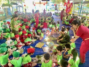 Hoạt động không chỉ giúp trẻ rèn luyện sự khéo léo, kiên nhẫn mà còn giáo dục các em về ý nghĩa văn hóa của bánh chưng, bánh tét – biểu tượng của sự đoàn viên và sẻ chia.…