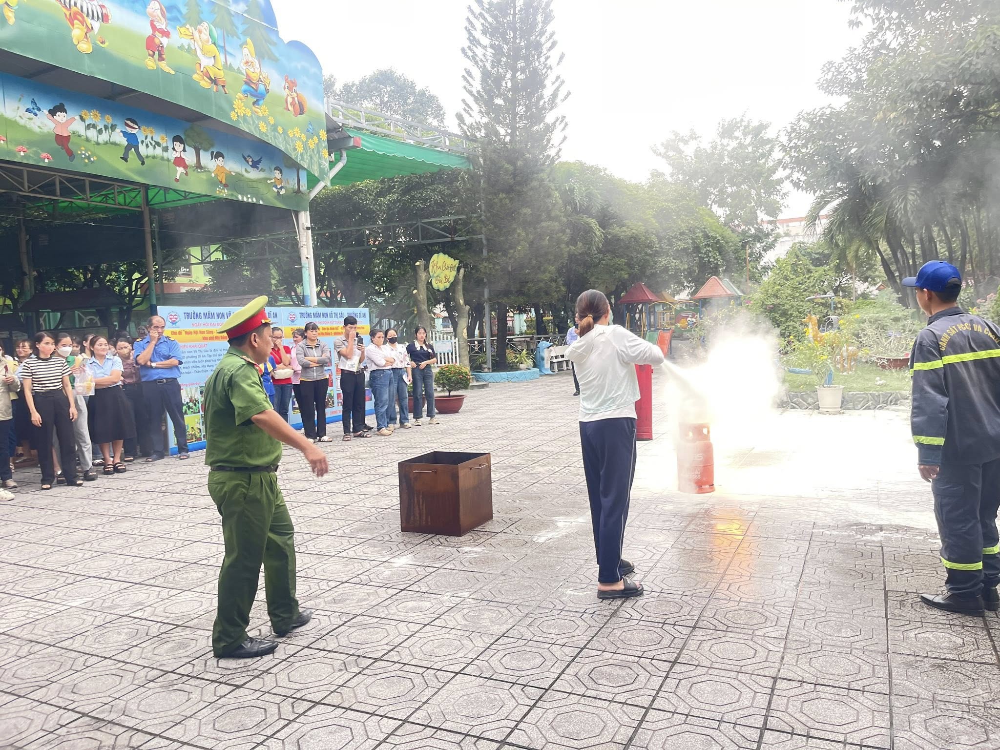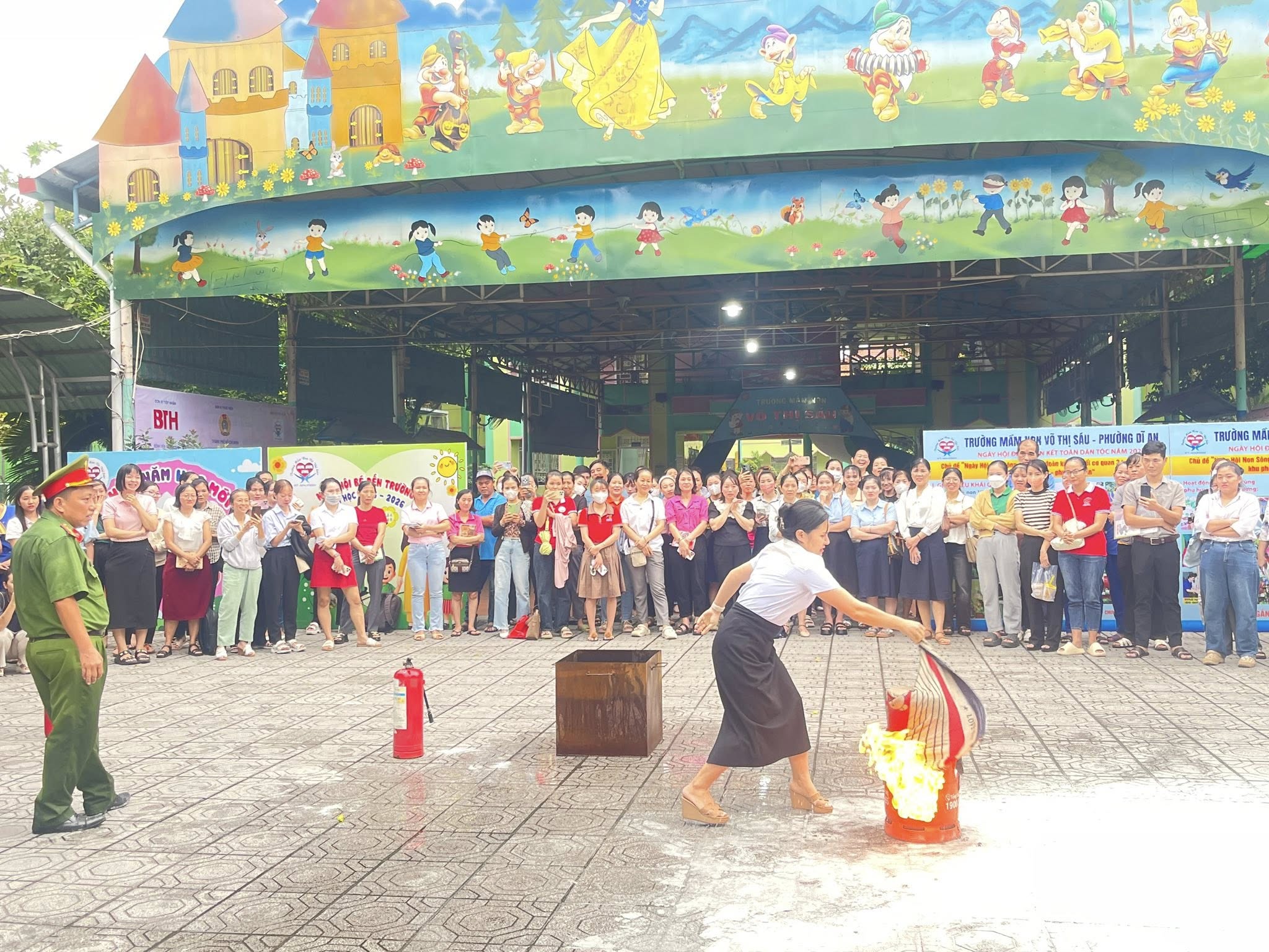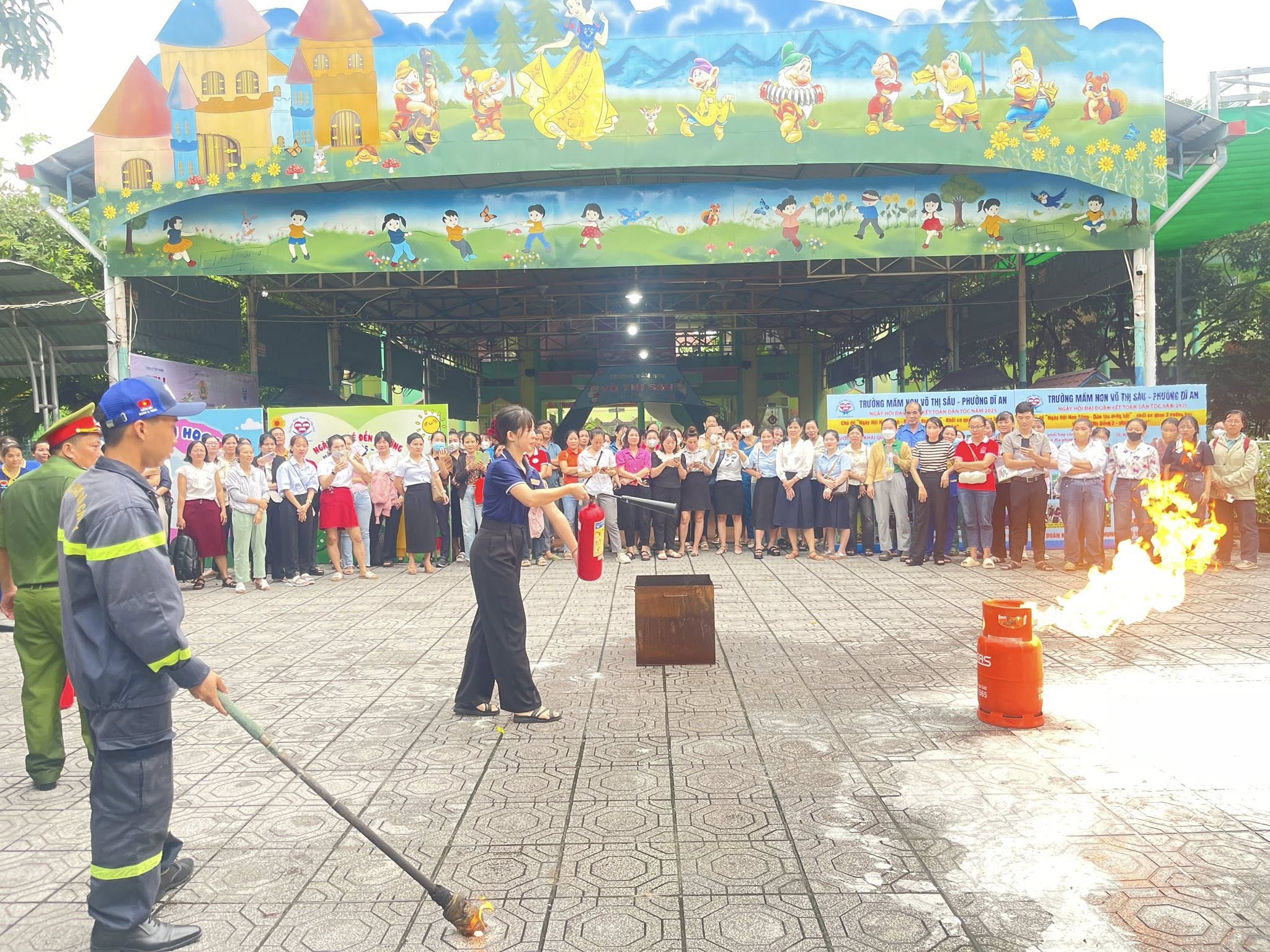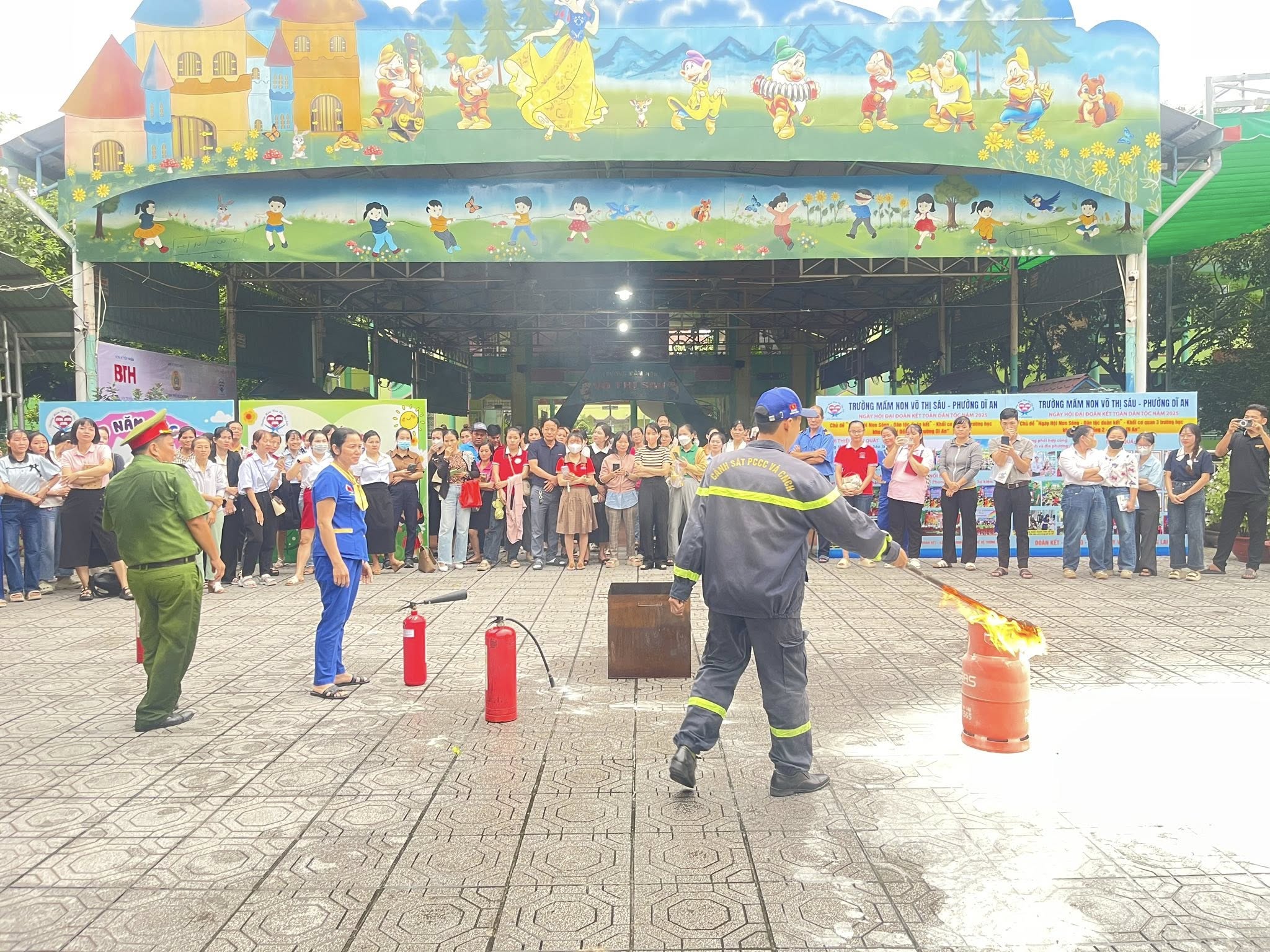 Trường Mầm non Võ Thị Sáu phối hợp cùng Phòng Cảnh sát PCCC&CNCH – Đội CC&CNCH Khu vực 33 tổ chức buổi tập huấn nghiệp vụ PCCC cho cán bộ, giáo viên các trường công lập và tư thục Phường Dĩ An