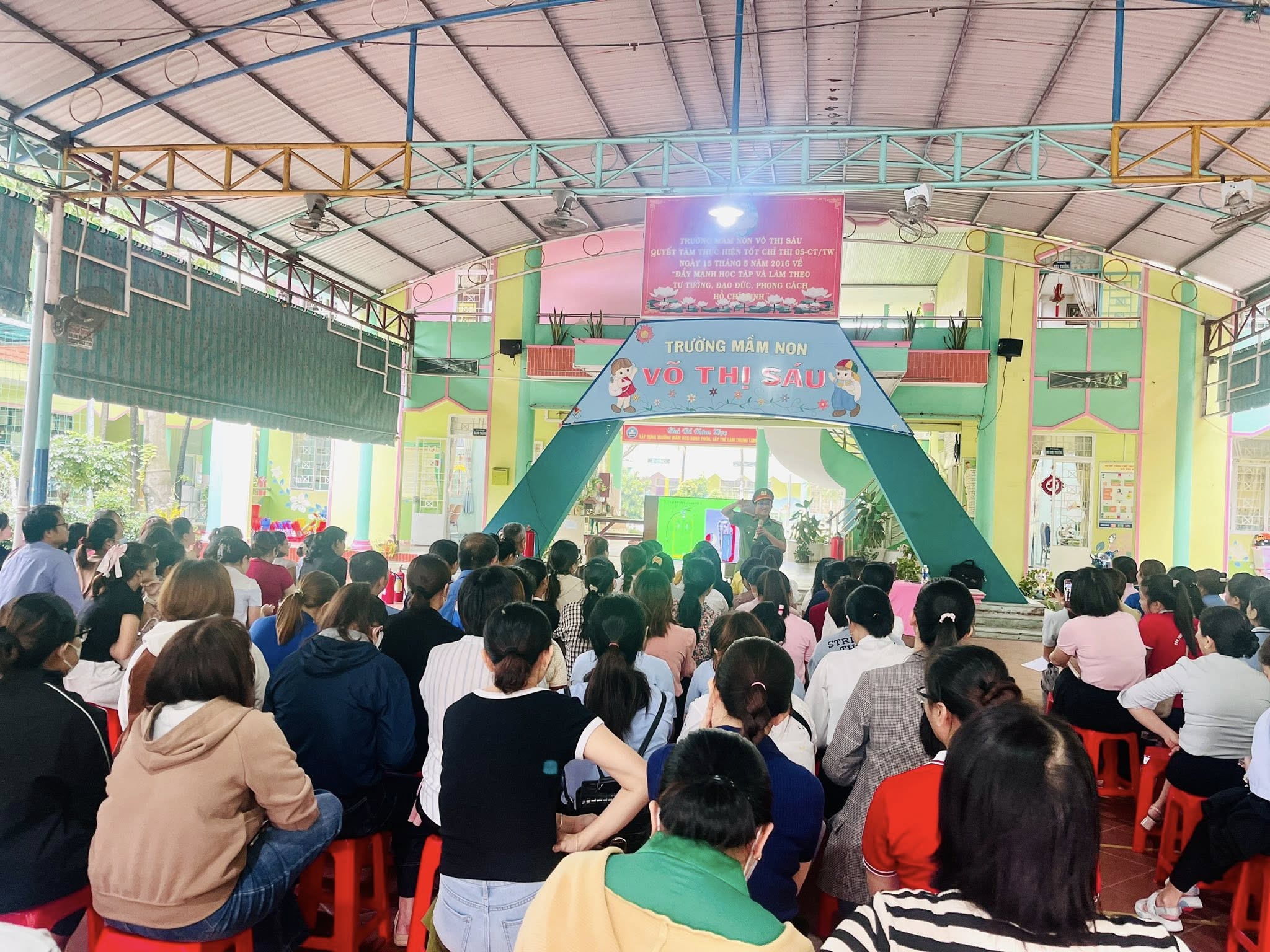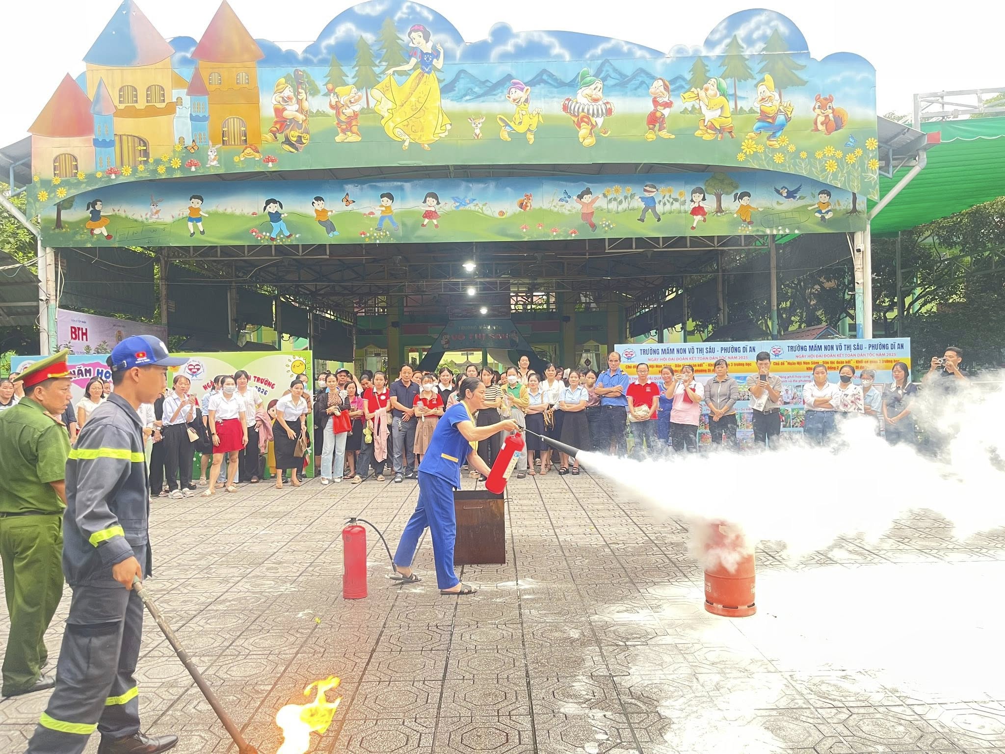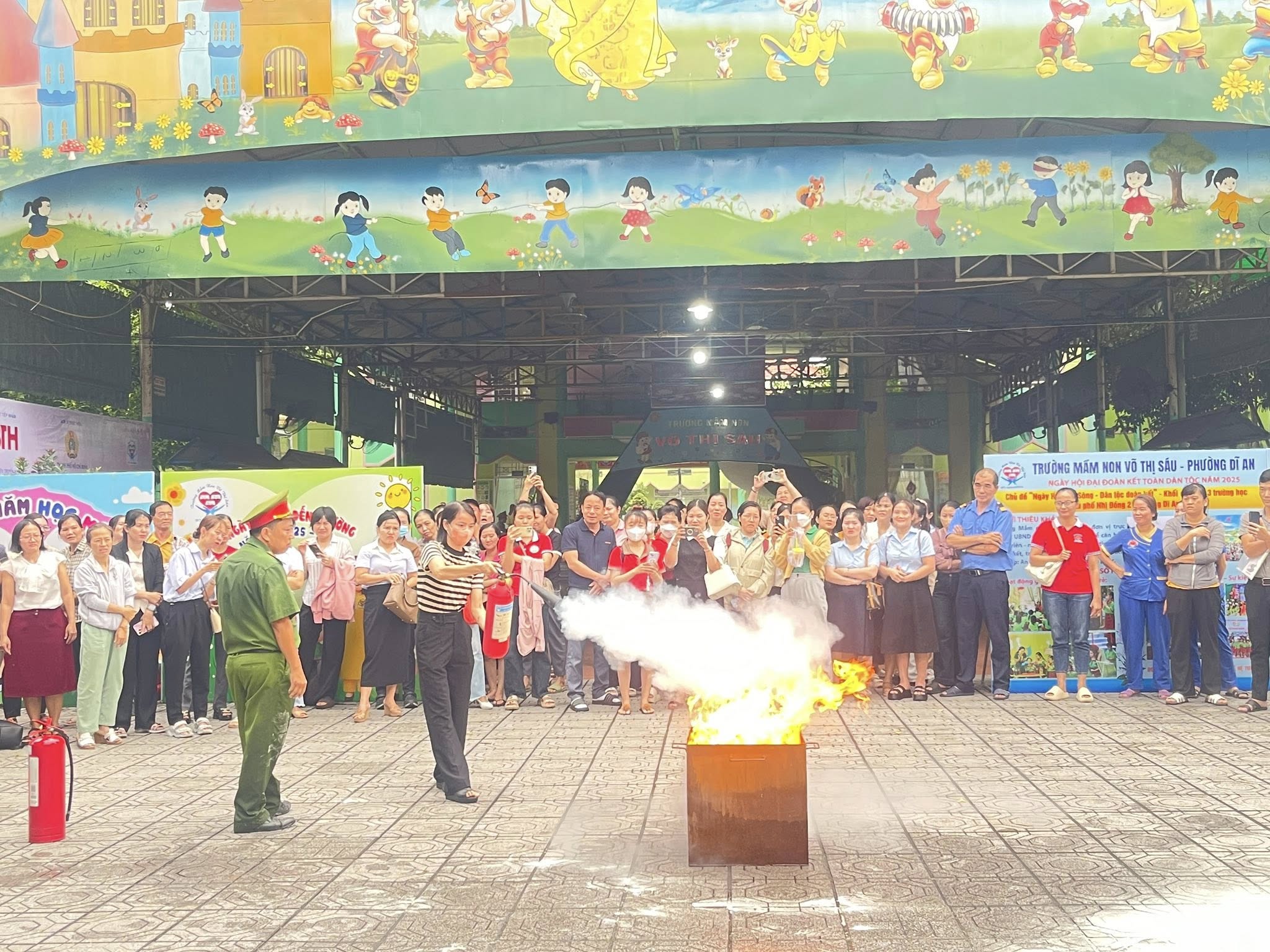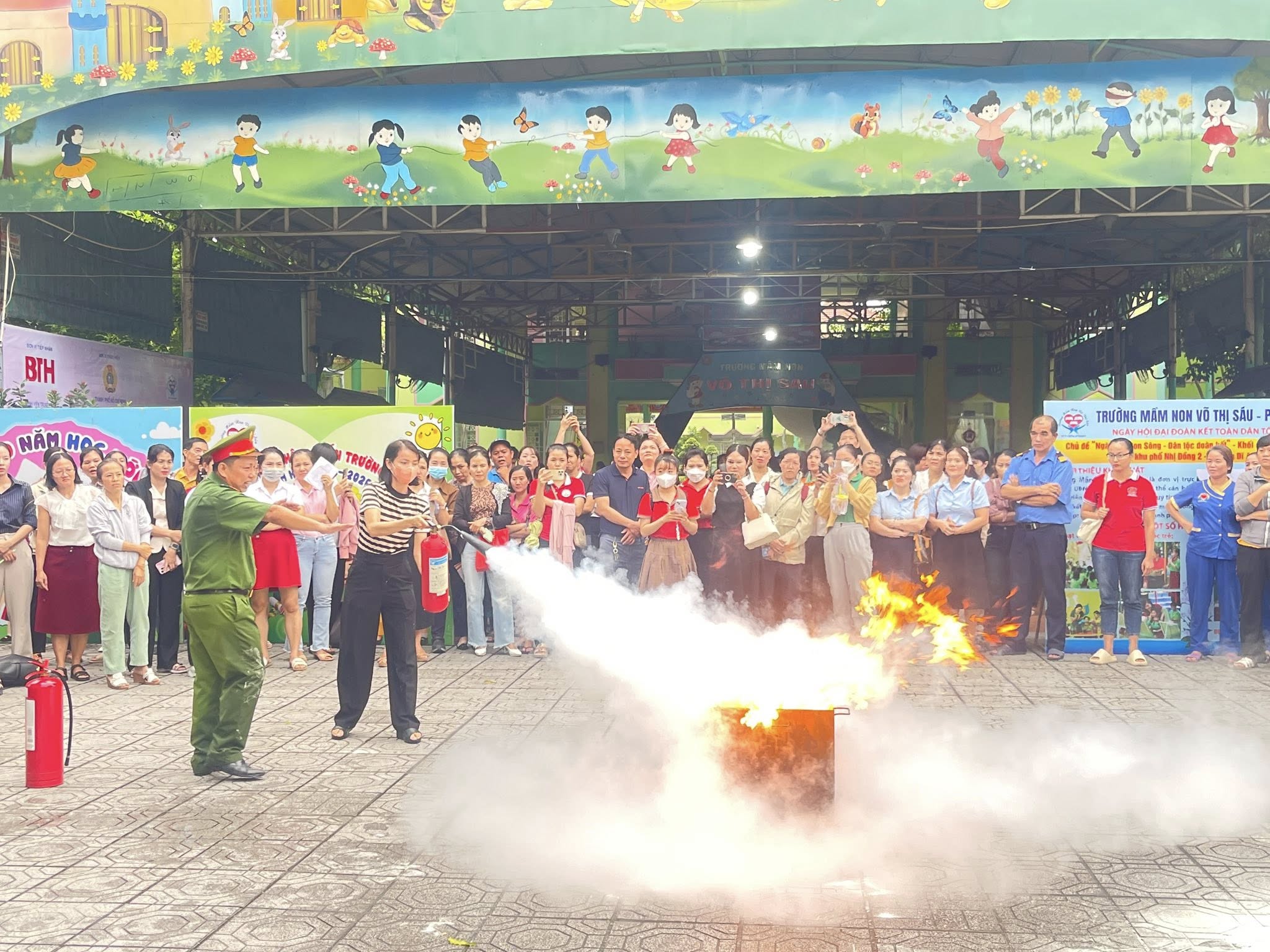 Trường Mầm non Võ Thị Sáu phối hợp cùng Phòng Cảnh sát PCCC&CNCH – Đội CC&CNCH Khu vực 33 tổ chức buổi tập huấn nghiệp vụ PCCC cho cán bộ, giáo viên các trường công lập và tư thục Phường Dĩ An