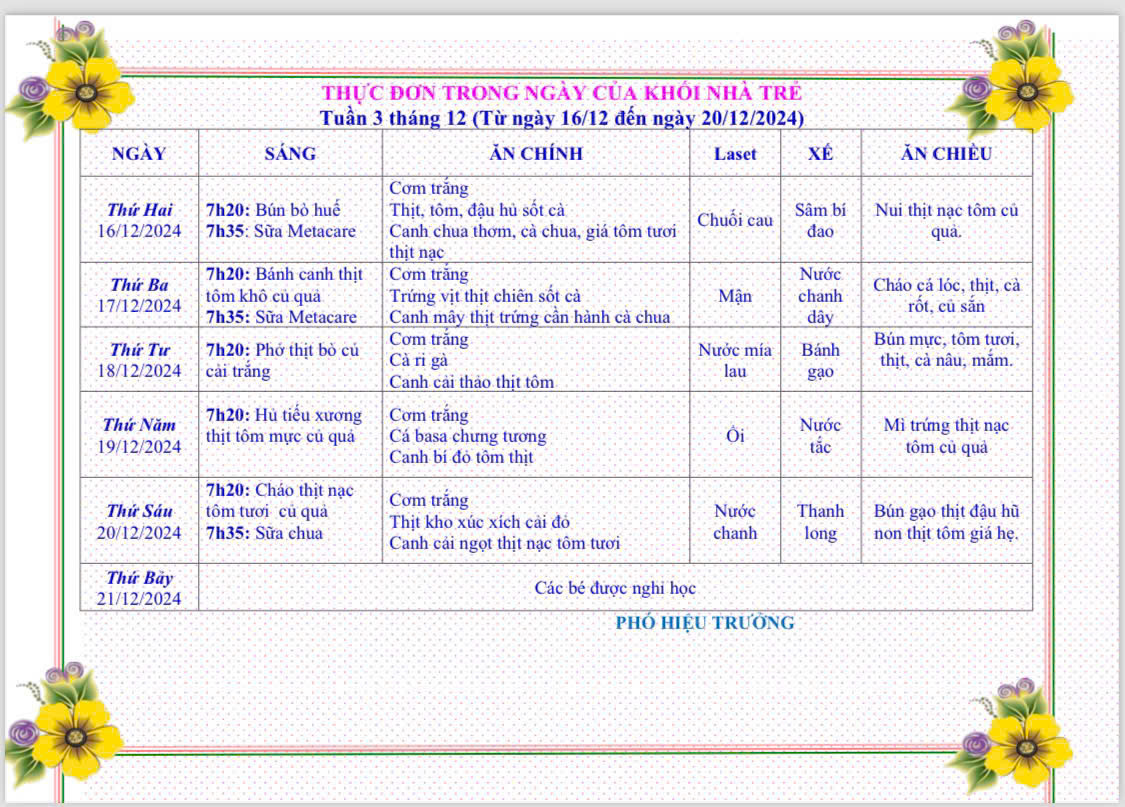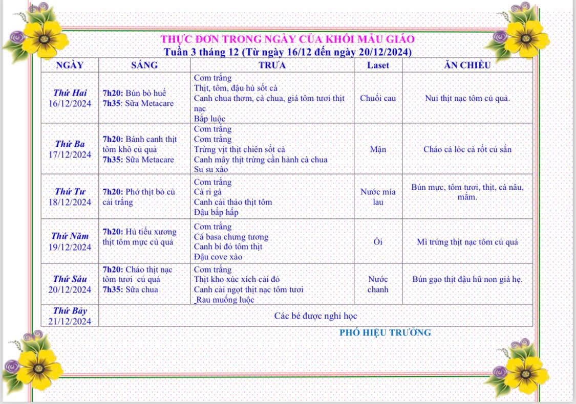 Bữa ăn của béThực đơn của bé từ ngày 16 đến ngày 20 tháng 12 năm 2024 Posted on 25/12/2024 by admin Xem thêm: PHÒNG BỆNH MÙA NẮNG NÓNG Ba mẹ lưu ý nhắc nhở các con sử dụng điện thoại, ipad, thiết bị điện tử an toàn Kết luận của Bộ Chính trị về chủ trương công tác cán bộ. THỰC ĐƠN TỪ 06 THÁNG 10 ĐẾN 11 THÁNG 10 NĂM 2025 KIỂM ĐỊNH CHẤT LƯỢNG – CÔNG NHẬN TRƯỜNG MẦM NON ĐẠT CHUẨN QUỐC GIA Bài viết cùng chủ đề: THỰC ĐƠN TỪ 1 THÁNG 12 ĐẾN 6 THÁNG 12 NĂM 2025 THỰC ĐƠN TỪ 24 THÁNG 11 ĐẾN 29 THÁNG 11 NĂM 2025 THỰC ĐƠN TỪ 17 THÁNG 11 ĐẾN 22 THÁNG 11 NĂM 2025 THỰC ĐƠN TỪ 10 THÁNG 11 ĐẾN 15 THÁNG 11 NĂM 2025 THỰC ĐƠN TỪ NGÀY 3 THÁNG 11 ĐẾN NGÀY 8 THÁNG 11 NĂM 2025 THỰC ĐƠN TỪ 27 THÁNG 10 ĐẾN NGÀY 1 THÁNG 11 NĂM 2025 THỰC ĐƠN TỪ NGÀY 20 THÁNG 10 ĐẾN NGÀY 25 THÁNG 10 NĂM 2025 THỰC ĐƠN TỪ 13 THÁNG 10 ĐẾN 18 THÁNG 10 NĂM 2025 THỰC ĐƠN TỪ 06 THÁNG 10 ĐẾN 11 THÁNG 10 NĂM 2025 THỰC ĐƠN TỪ 29 THÁNG 9 ĐẾN 4 THÁNG 10 NĂM 2025 THỰC ĐƠN TỪ NGÀY 22/9/2025 ĐẾN NGÀY 27/9/2025 THỰC ĐƠN TỪ NGÀY 15/9/2025 ĐẾN NGÀY 20/9/2025 THỰC ĐƠN TỪ NGÀY 8/9/2025 ĐẾN NGÀY 13/9/2025 THỰC ĐƠN TỪ NGÀY 1/9/2025 ĐẾN NGÀY 6/9/2025 THỰC ĐƠN TỪ 11/8/2025 ĐẾN 16/8/2025 THỰC ĐƠN TỪ NGÀY 4/8 ĐẾN 9/8/2025 Thực đơn của bé từ ngày 9 đến ngày 14 tháng 12 năm 2024 Thực đơn của bé từ ngày 23 đến ngày 28 tháng 12 năm 2024