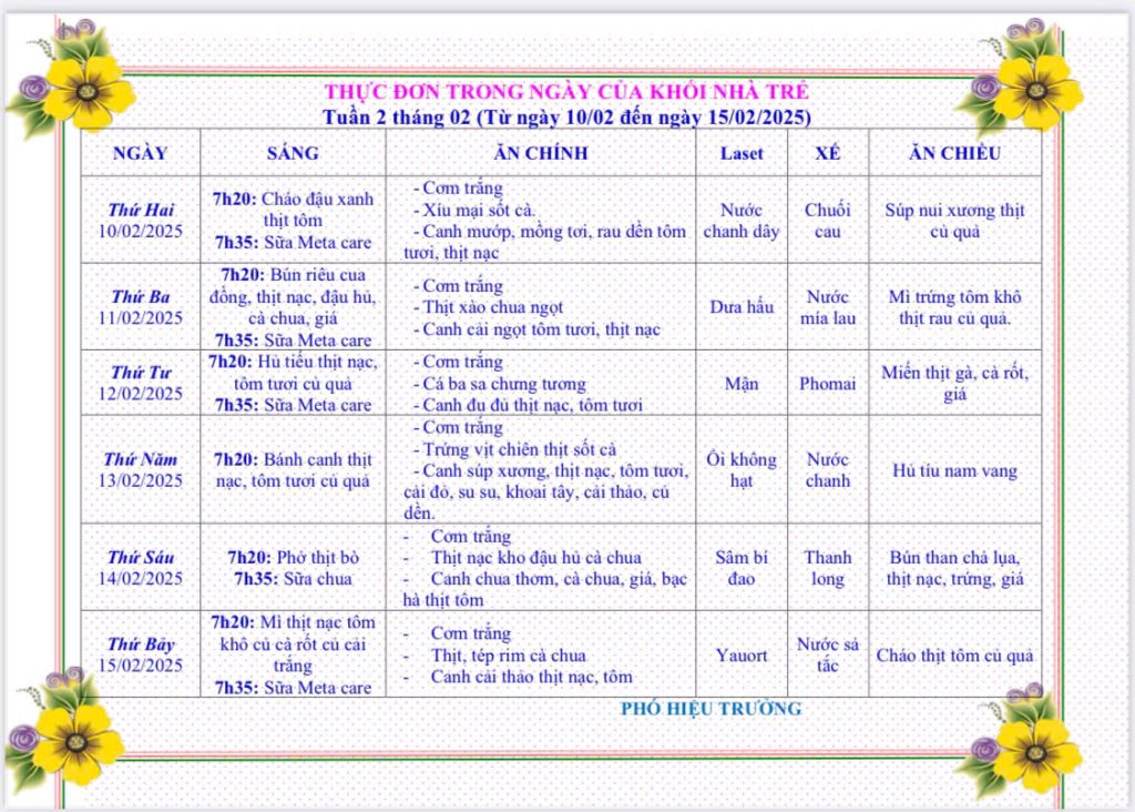 - THỰC ĐƠN TỪ 07/07 ĐẾN 12/07/2025