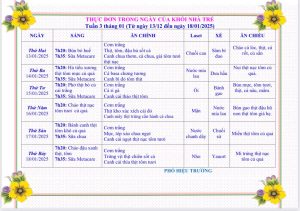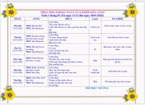 Bữa ăn của béThực đơn từ ngày 13 tháng 01 đến ngày 17 tháng 01 năm 2025 Posted on 13/02/2025 by tuyethanh Xem thêm: Thông báo Tuyển sinh Năm học 2025 – 2026 Ba mẹ cùng nhắc nhở các con giữ đôi tay sạch nhé! THỰC ĐƠN TỪ NGÀY 03 THÁNG 02 ĐẾN NGÀY 08 THÁNG 02 NĂM 2025 Thực đơn cho các bé từ ngày 16 đến ngày 21 tháng 9 năm 2024 Tổng Bí thư: Quy hoạch thế nào mà có nơi không có trường học? Bài viết cùng chủ đề: THỰC ĐƠN TỪ 1 THÁNG 12 ĐẾN 6 THÁNG 12 NĂM 2025 THỰC ĐƠN TỪ 24 THÁNG 11 ĐẾN 29 THÁNG 11 NĂM 2025 THỰC ĐƠN TỪ 17 THÁNG 11 ĐẾN 22 THÁNG 11 NĂM 2025 THỰC ĐƠN TỪ 10 THÁNG 11 ĐẾN 15 THÁNG 11 NĂM 2025 THỰC ĐƠN TỪ NGÀY 3 THÁNG 11 ĐẾN NGÀY 8 THÁNG 11 NĂM 2025 THỰC ĐƠN TỪ 27 THÁNG 10 ĐẾN NGÀY 1 THÁNG 11 NĂM 2025 THỰC ĐƠN TỪ NGÀY 20 THÁNG 10 ĐẾN NGÀY 25 THÁNG 10 NĂM 2025 THỰC ĐƠN TỪ 13 THÁNG 10 ĐẾN 18 THÁNG 10 NĂM 2025 THỰC ĐƠN TỪ 06 THÁNG 10 ĐẾN 11 THÁNG 10 NĂM 2025 THỰC ĐƠN TỪ 29 THÁNG 9 ĐẾN 4 THÁNG 10 NĂM 2025 THỰC ĐƠN TỪ NGÀY 22/9/2025 ĐẾN NGÀY 27/9/2025 THỰC ĐƠN TỪ NGÀY 15/9/2025 ĐẾN NGÀY 20/9/2025 THỰC ĐƠN TỪ NGÀY 8/9/2025 ĐẾN NGÀY 13/9/2025 THỰC ĐƠN TỪ NGÀY 1/9/2025 ĐẾN NGÀY 6/9/2025 THỰC ĐƠN TỪ 11/8/2025 ĐẾN 16/8/2025 THỰC ĐƠN TỪ NGÀY 4/8 ĐẾN 9/8/2025 Thực đơn từ ngày 6 tháng 1 năm 2025 đến ngày 11 tháng 1 năm 2025 THỰC ĐƠN TỪ NGÀY 20 THÁNG 1 ĐẾN NGÀY 24 THÁNG 1 NĂM 2025