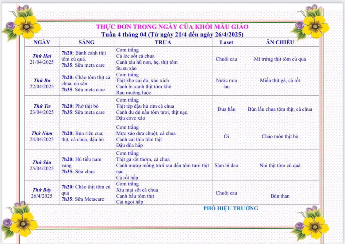- Thực đơn từ ngày 17 tháng 2 năm 2025 đến ngày 21 tháng 2 năm 2025
