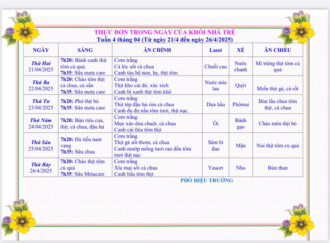 - Thực đơn từ ngày 17 tháng 2 năm 2025 đến ngày 21 tháng 2 năm 2025