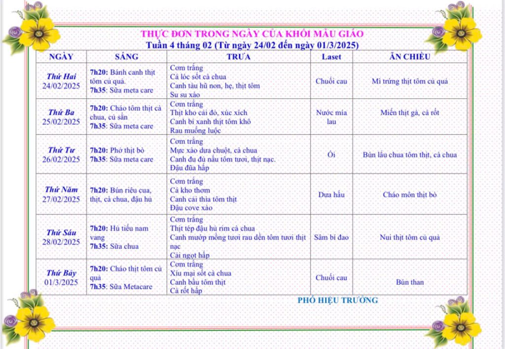 - THỰC ĐƠN TỪ NGÀY 17 THÁNG 03 NĂM 2025 ĐẾN NGÀY 22 THÁNG 03 NĂM 2025