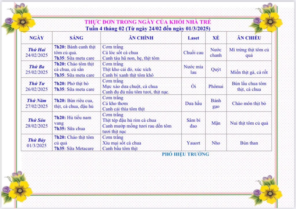 - THỰC ĐƠN TỪ NGÀY 17 THÁNG 03 NĂM 2025 ĐẾN NGÀY 22 THÁNG 03 NĂM 2025