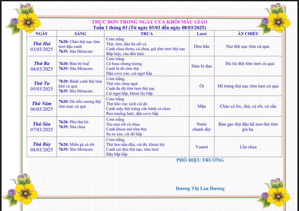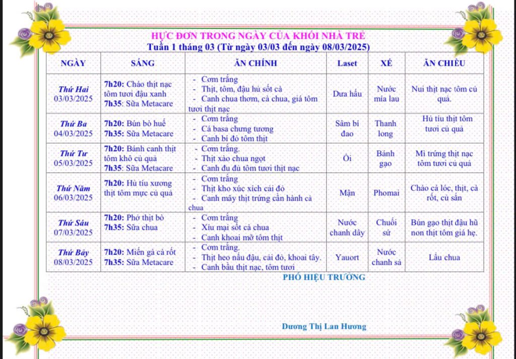 Bữa ăn của béThực đơn từ ngày 3 tháng 3 năm 2025 đến ngày 8 tháng 3 năm 2025 Posted on 28/02/2025 by tuyethanh Xem thêm: TẾT YÊU THƯƠNG – CHIA SẺ NIỀM VUI THỰC ĐƠN TỪ NGÀY 4/8 ĐẾN 9/8/2025 Thực đơn của bé từ ngày 21 đến 26 tháng 10 năm 2024 Lễ ra trường học sinh lớp lá năm học 2024-2025 Thực đơn từ ngày 14 tháng 4 đến ngày 19 tháng 4 năm 2025 Bài viết cùng chủ đề: THỰC ĐƠN TỪ 1 THÁNG 12 ĐẾN 6 THÁNG 12 NĂM 2025 THỰC ĐƠN TỪ 24 THÁNG 11 ĐẾN 29 THÁNG 11 NĂM 2025 THỰC ĐƠN TỪ 17 THÁNG 11 ĐẾN 22 THÁNG 11 NĂM 2025 THỰC ĐƠN TỪ 10 THÁNG 11 ĐẾN 15 THÁNG 11 NĂM 2025 THỰC ĐƠN TỪ NGÀY 3 THÁNG 11 ĐẾN NGÀY 8 THÁNG 11 NĂM 2025 THỰC ĐƠN TỪ 27 THÁNG 10 ĐẾN NGÀY 1 THÁNG 11 NĂM 2025 THỰC ĐƠN TỪ NGÀY 20 THÁNG 10 ĐẾN NGÀY 25 THÁNG 10 NĂM 2025 THỰC ĐƠN TỪ 13 THÁNG 10 ĐẾN 18 THÁNG 10 NĂM 2025 THỰC ĐƠN TỪ 06 THÁNG 10 ĐẾN 11 THÁNG 10 NĂM 2025 THỰC ĐƠN TỪ 29 THÁNG 9 ĐẾN 4 THÁNG 10 NĂM 2025 THỰC ĐƠN TỪ NGÀY 22/9/2025 ĐẾN NGÀY 27/9/2025 THỰC ĐƠN TỪ NGÀY 15/9/2025 ĐẾN NGÀY 20/9/2025 THỰC ĐƠN TỪ NGÀY 8/9/2025 ĐẾN NGÀY 13/9/2025 THỰC ĐƠN TỪ NGÀY 1/9/2025 ĐẾN NGÀY 6/9/2025 THỰC ĐƠN TỪ 11/8/2025 ĐẾN 16/8/2025 THỰC ĐƠN TỪ NGÀY 4/8 ĐẾN 9/8/2025 Thực đơn từ ngày 24 tháng 2 năm 2025 đến ngày 28 tháng 2 năm 2025 PHÒNG BỆNH MÙA NẮNG NÓNG