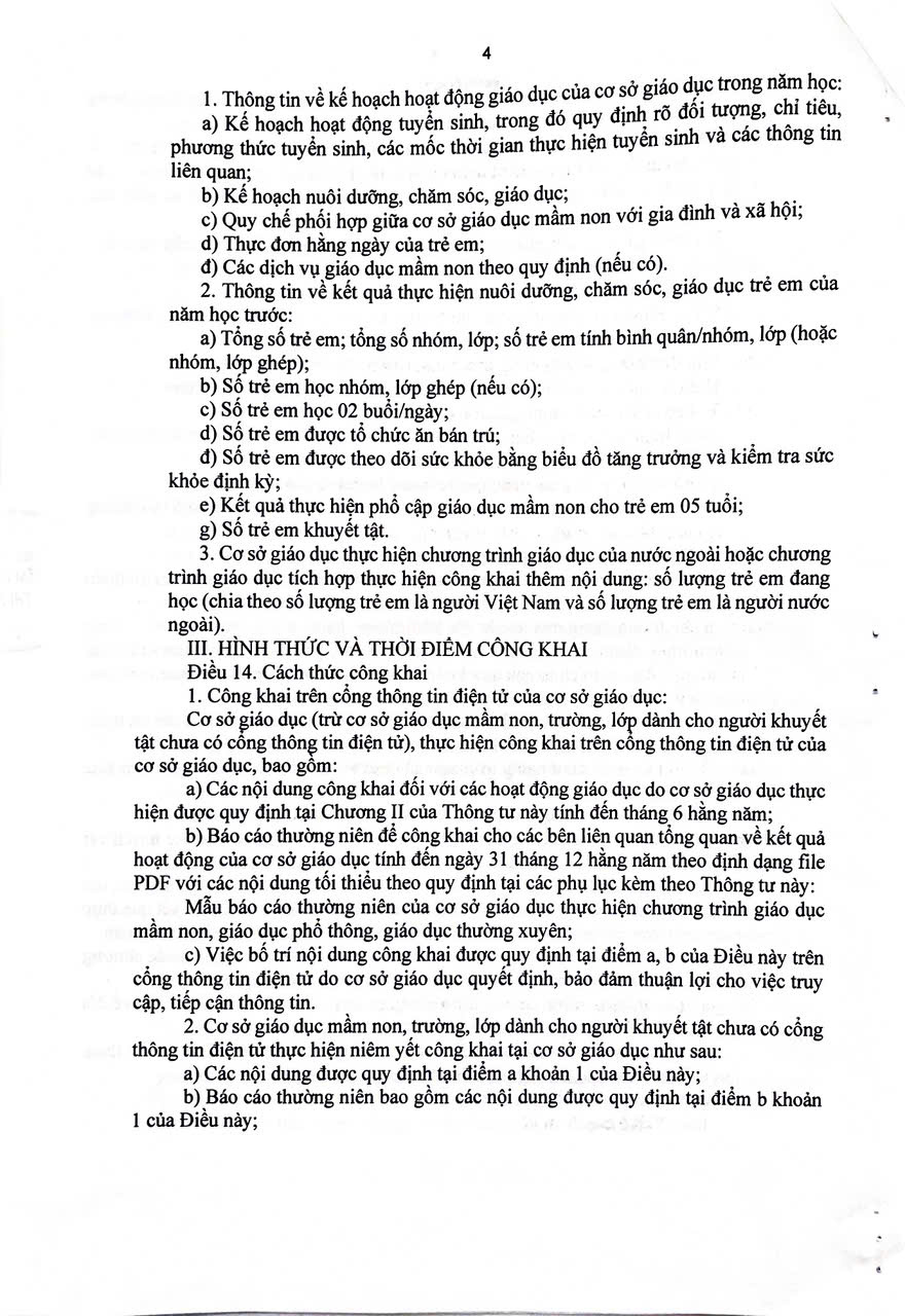 Thông tư 09/2024/TT-BGDĐT ngày 3/6/2024 Quy định về công khai trong hoạt động của các cơ sở giáo dục thuộc hệ thống giáo dục quốc dân