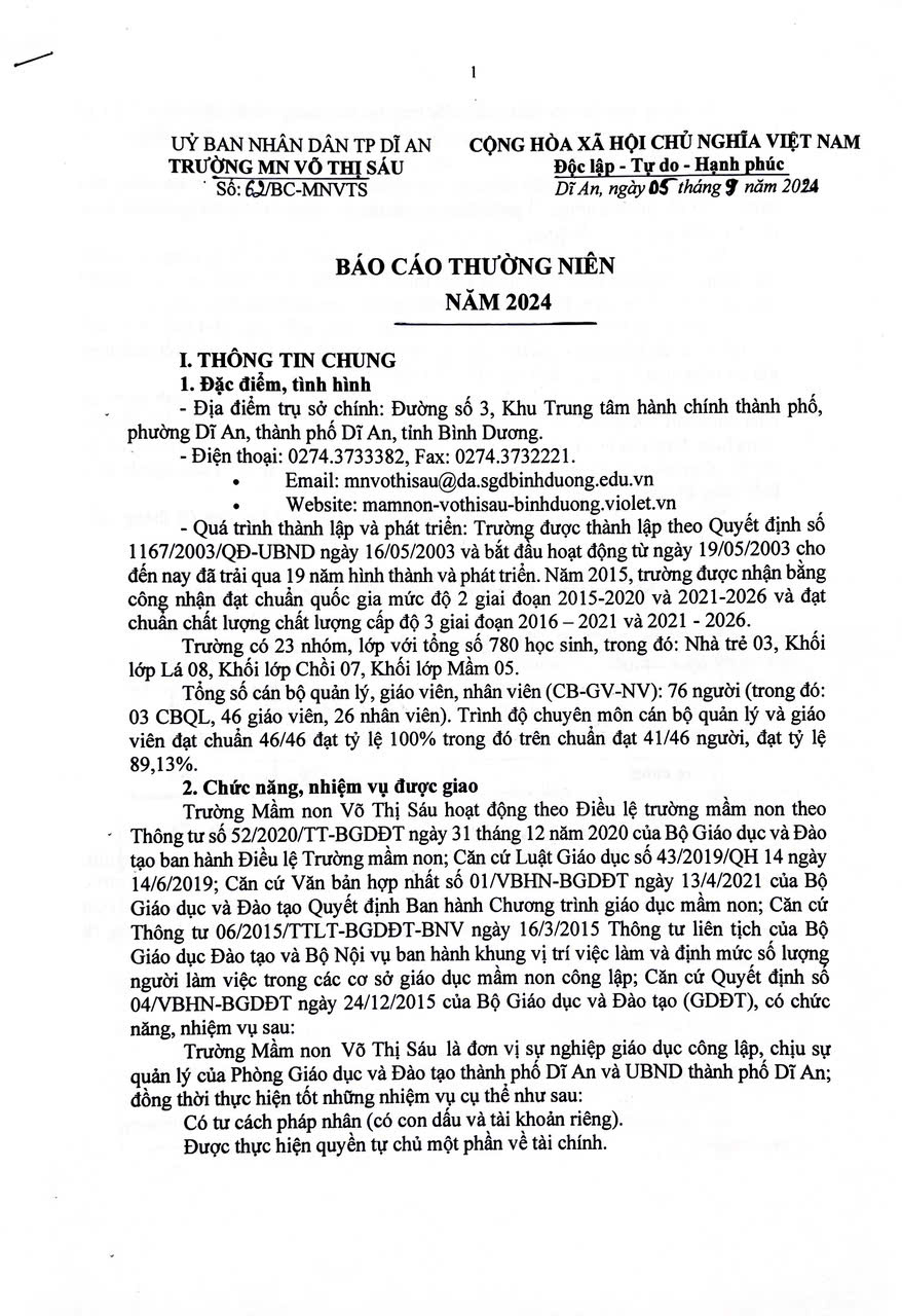 THỰC HIỆN CÔNG KHAI TRƯỜNG MN VÕ THỊ SÁU NĂM HỌC 2024-2025
